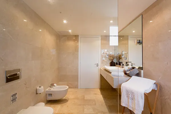 Finally, the rooftop reveals the hotel’s most exclusive charm. From above, the skyline opens up into a unique panorama that combines the blue of the sea, the light of day and the magic of the night.
